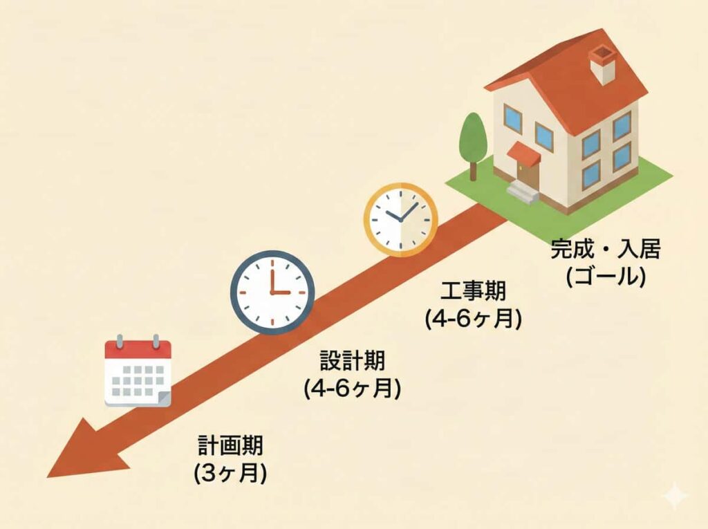 その後、土地探しや設計に4ヶ月から6ヶ月ほどかけるのが標準的です。